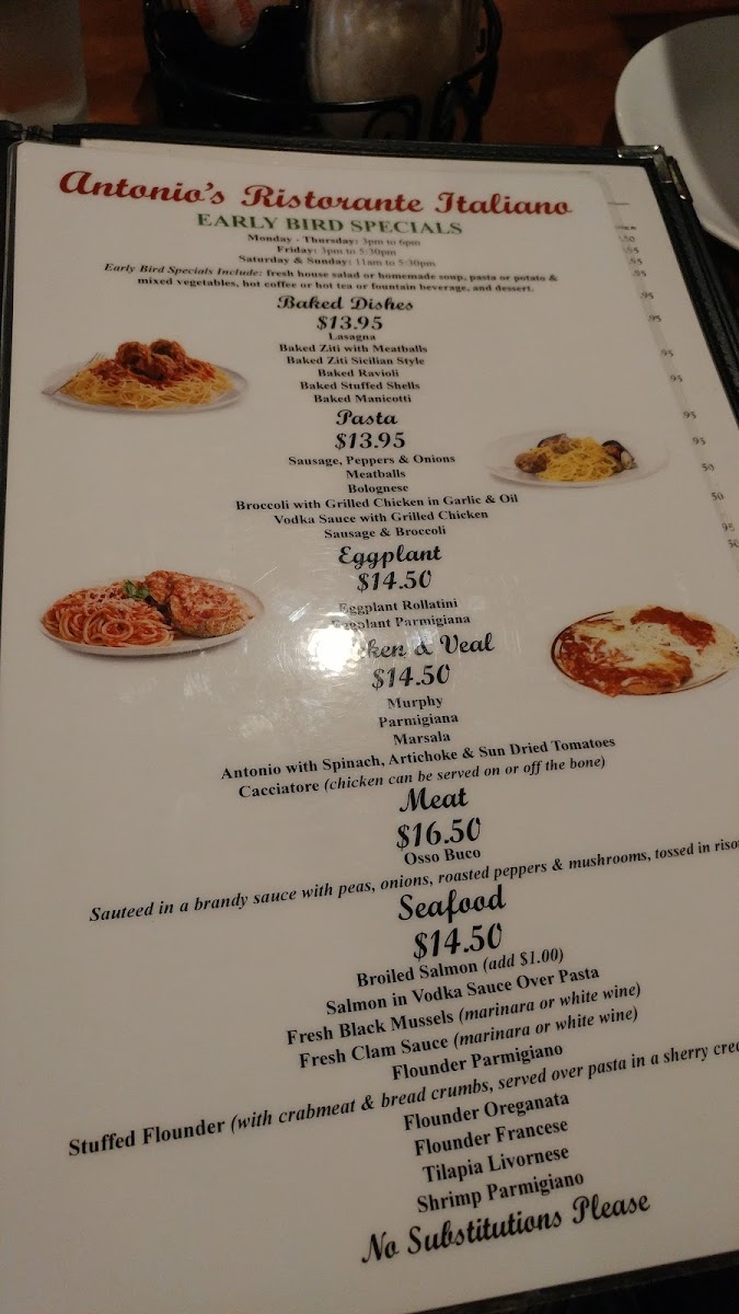 Antonio's Italian Restaurant Menu